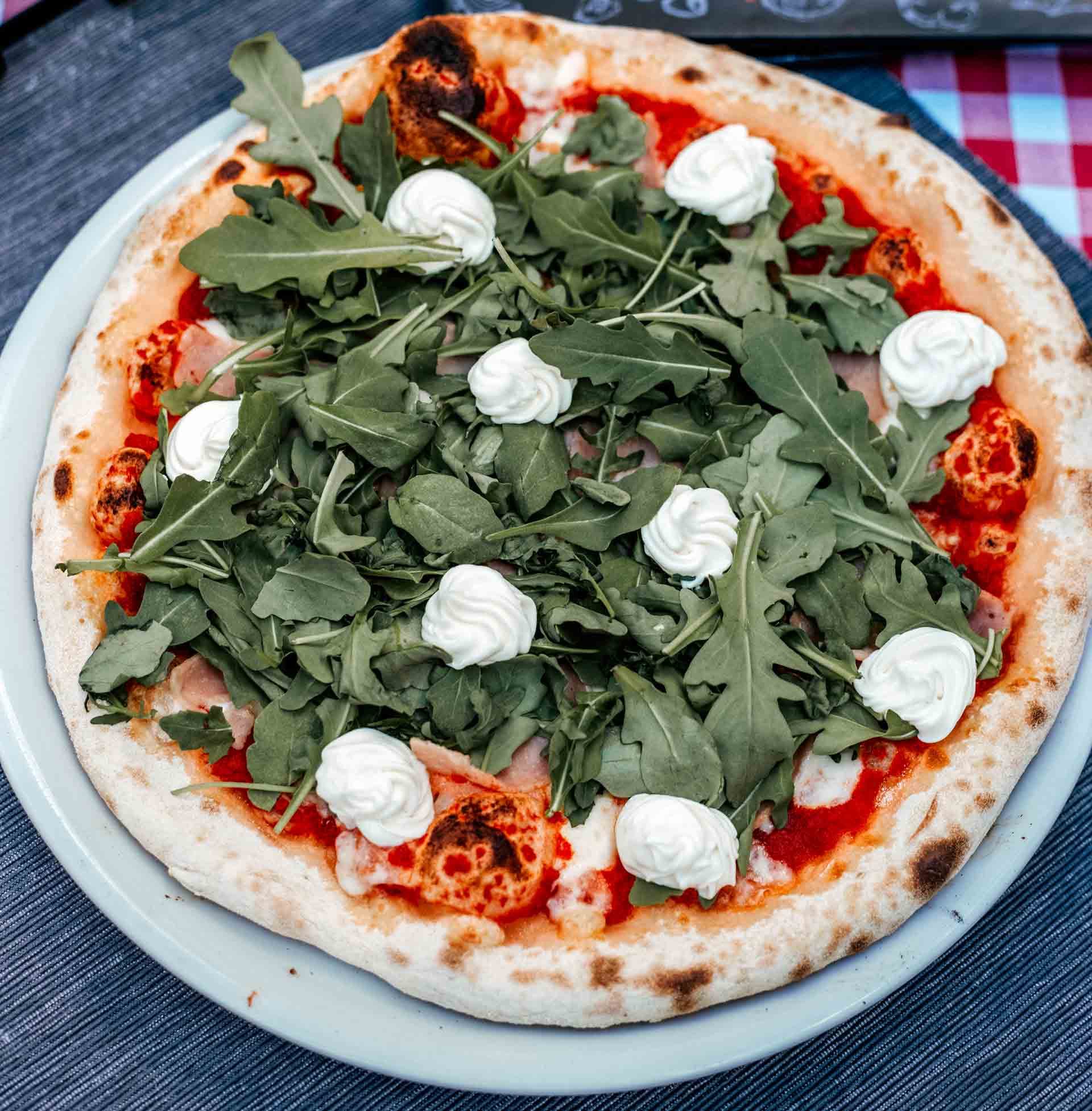 Pomidorų padažas, mocarelos sūris, virtas kumpis, gražgarstės, ,,Philadelphia” sūris