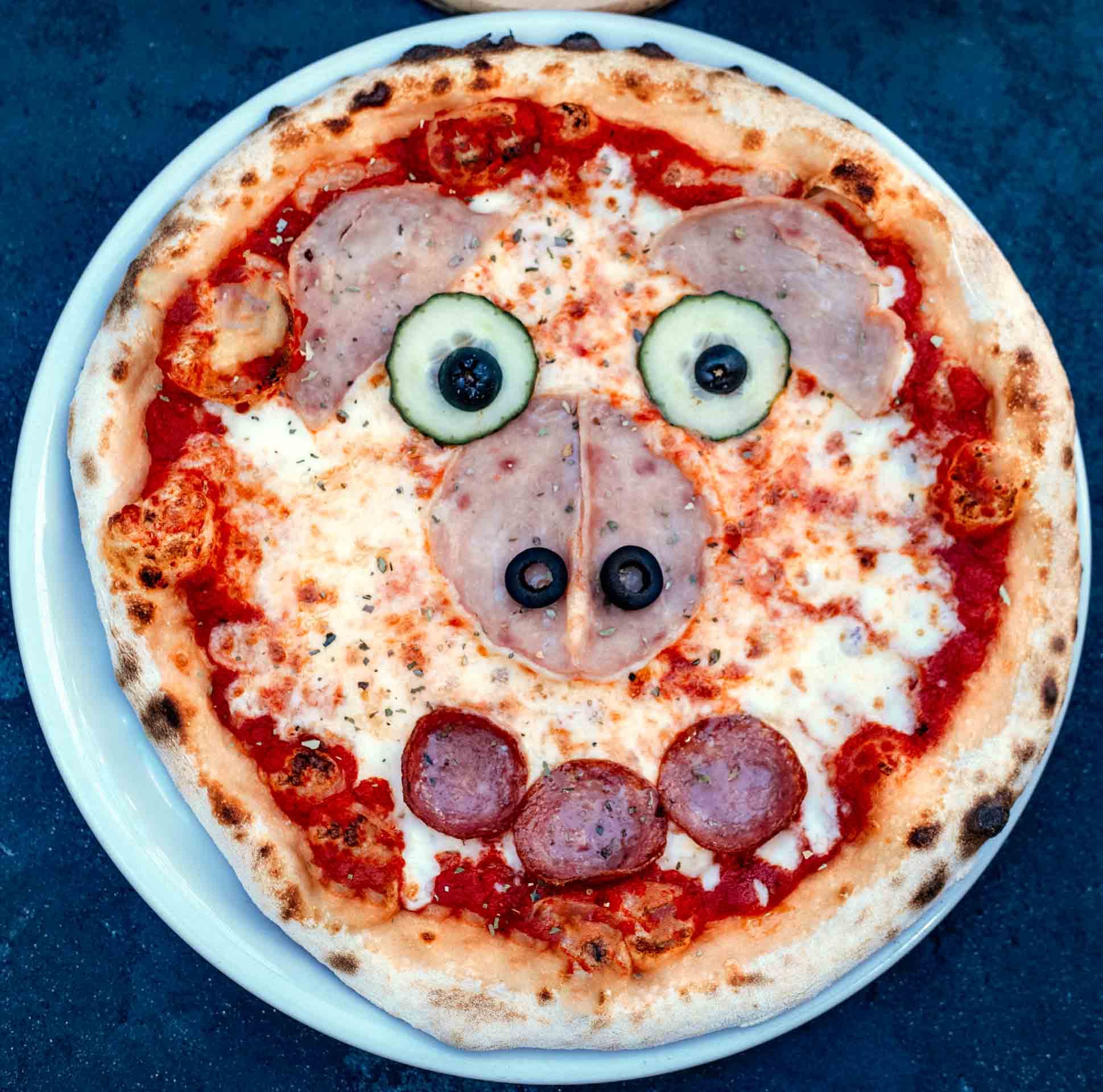 Pomidorų padažas, mocarelos sūris, virtas kumpis, įvairios daržovės
