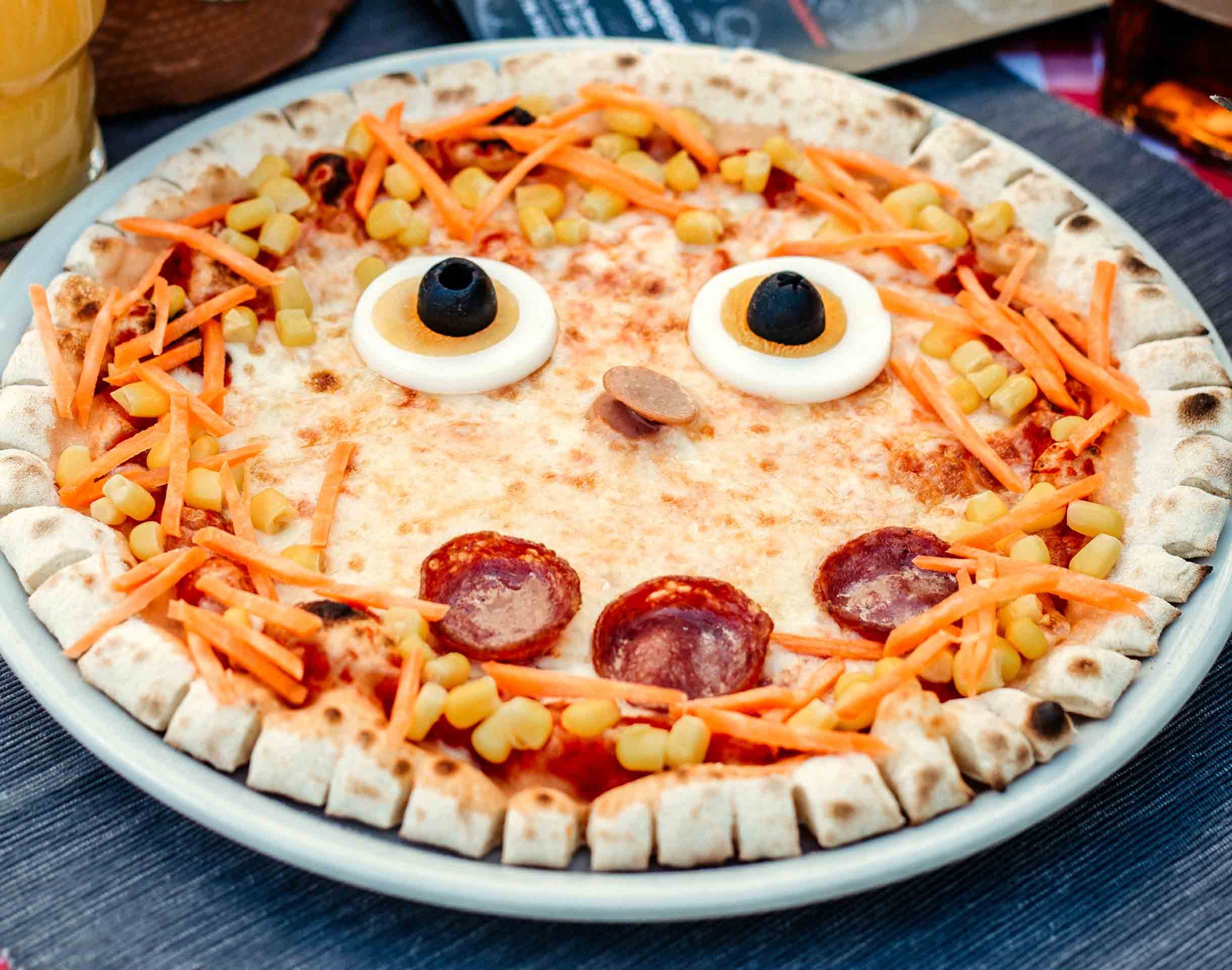 Pomidorų padažas, mocarelos sūris, virtas kumpis, įvairios daržovės