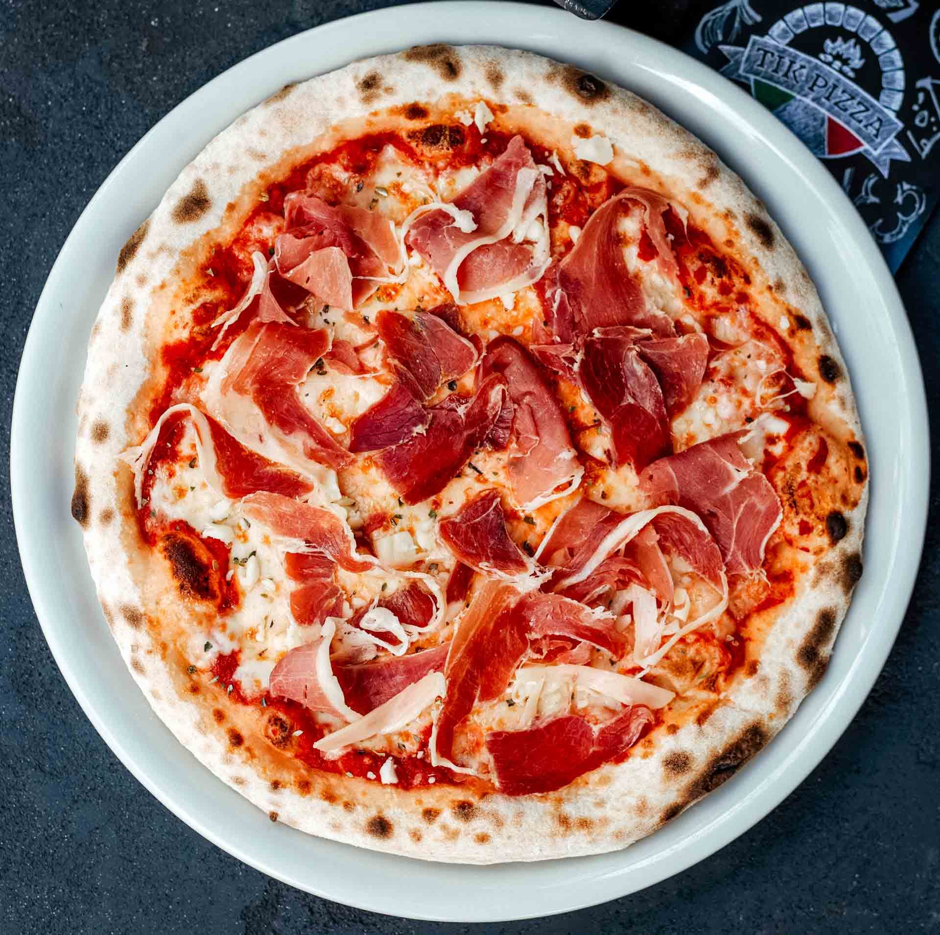 Pomidorų padažas, mocarelos sūris, vytintas kumpis
